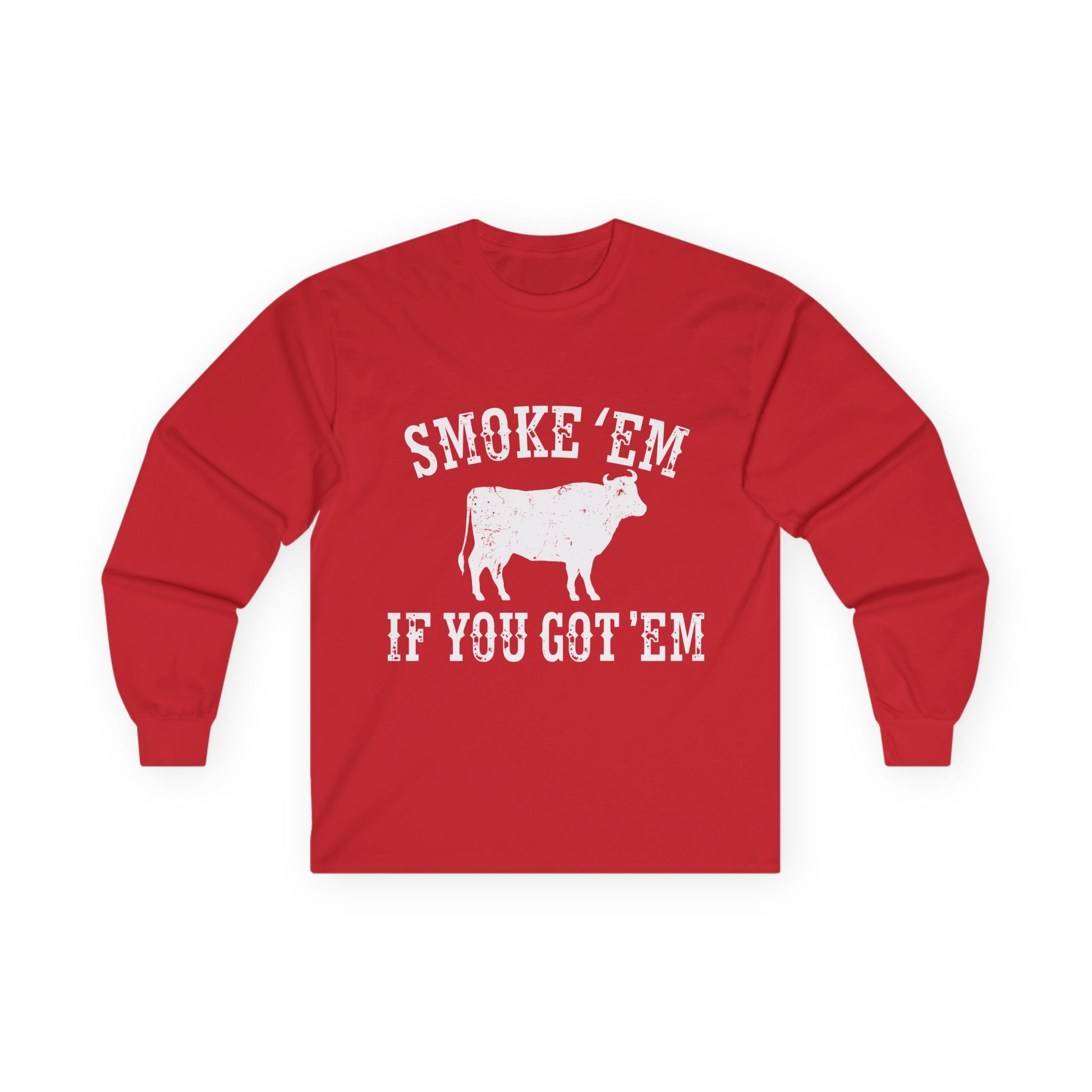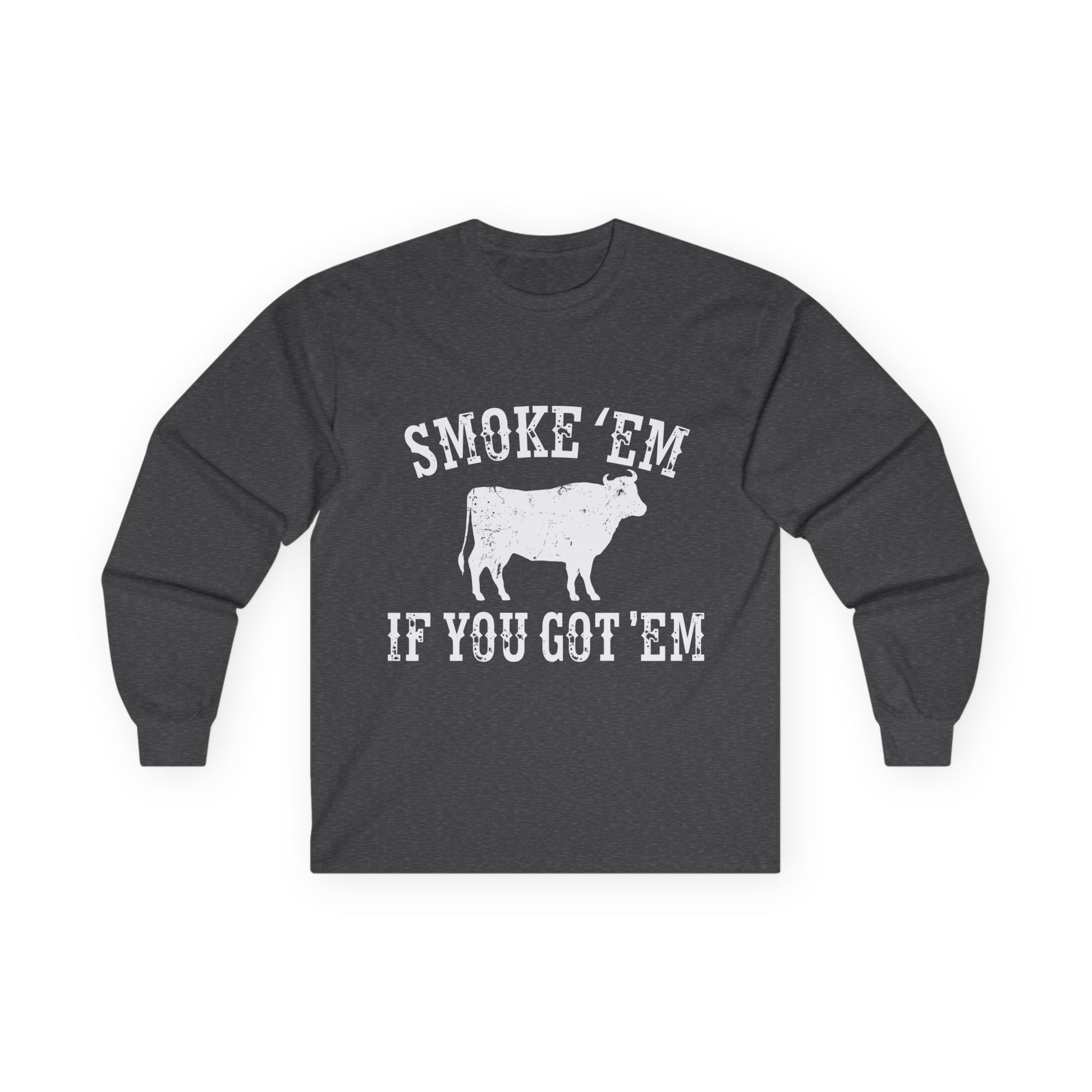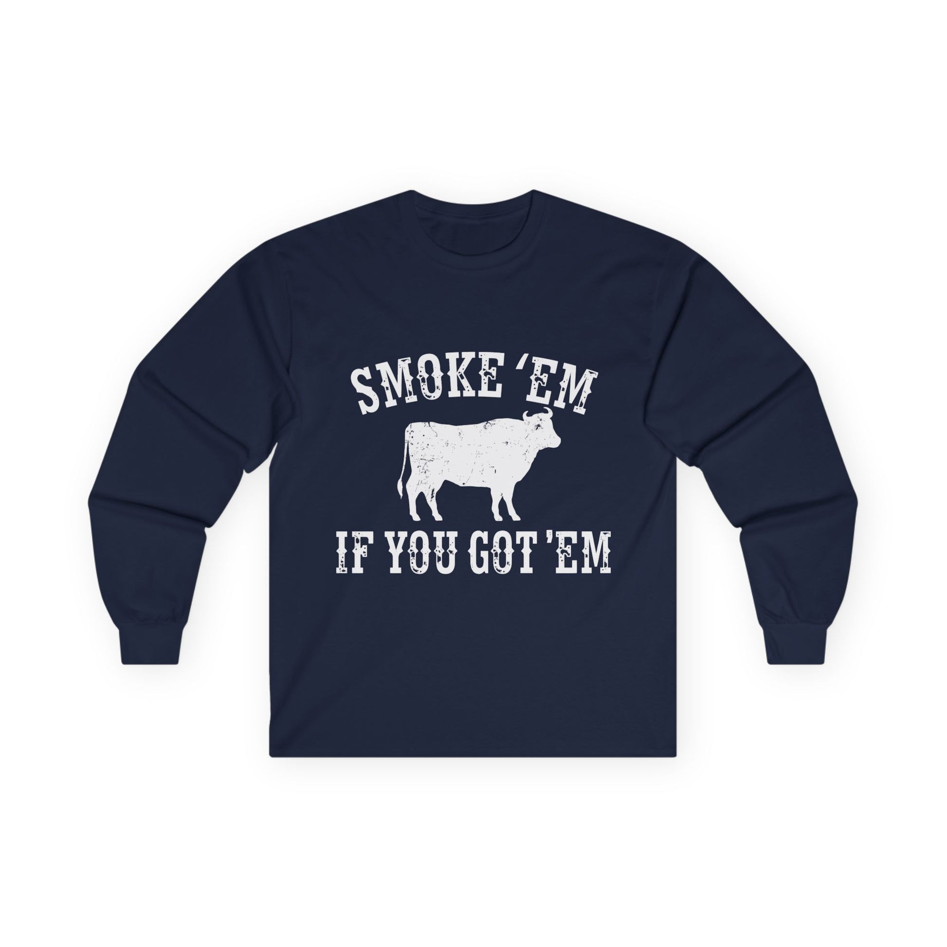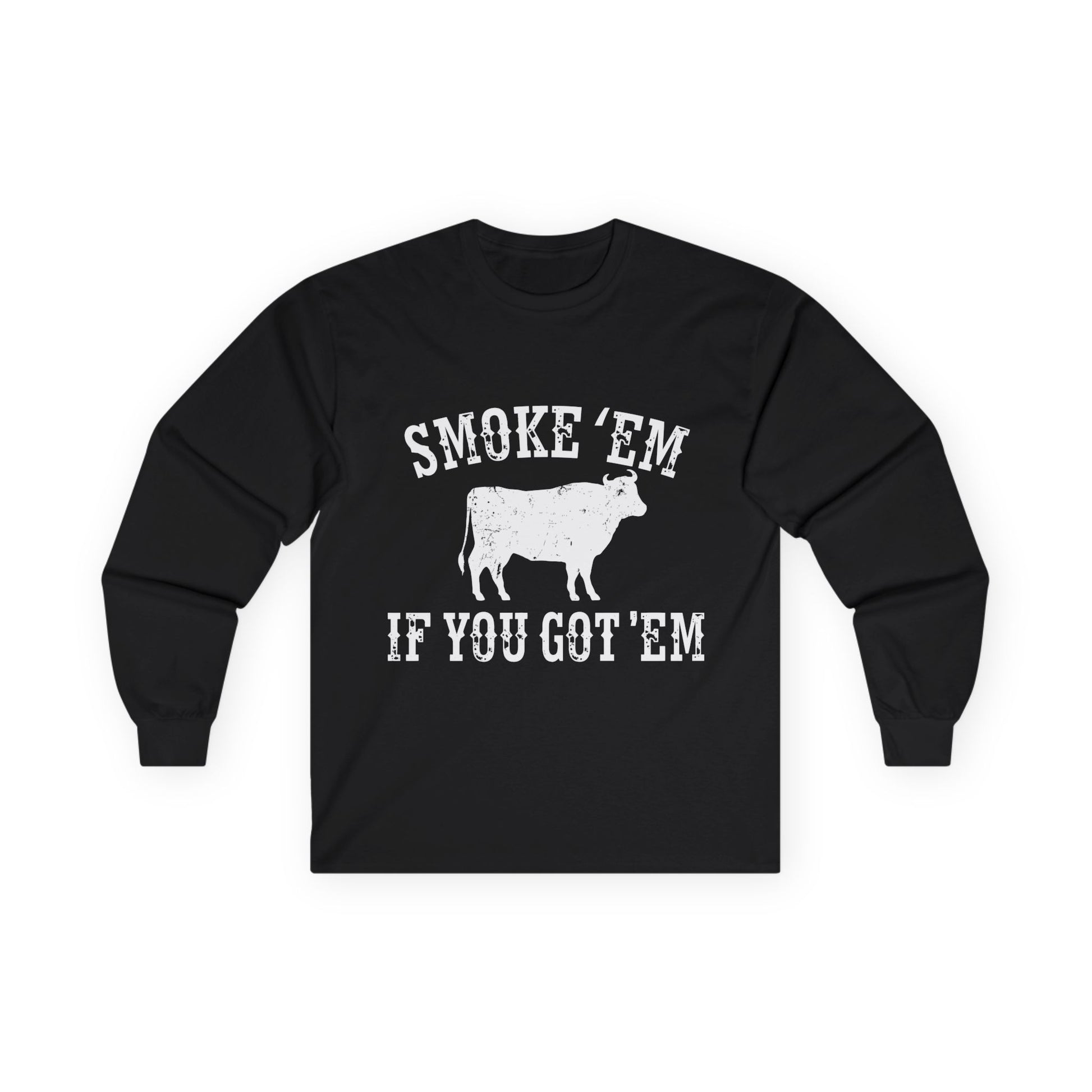 Texas 'Smoke 'Em If You Get 'Em' Vintage Cattle BBQ Graphic Long Sleeve Tee